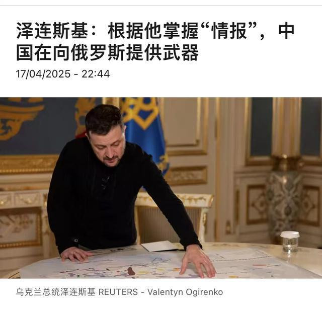 4月17日,泽连斯基出来说了,他从军队和情报那儿得知了一个坏消息,说中国给俄罗斯送了火药、火炮这些打仗的家伙。他还琢磨着,中国是不是还在俄罗斯的地盘上造这些武器呢。